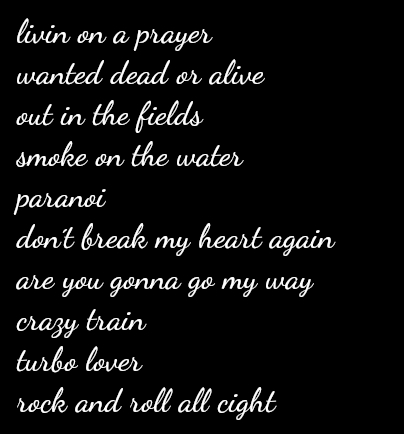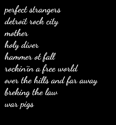RockHeads spielen von Deep Purple, Black Sabbath, Ozzy, Dio, The Beatles, Whitesnake, Stepenwolf, Neil Young, Kiss, Bates, Danzig, Black Stone Cherry, Gary Moore, Lenny Kravitz, Black Crowes, Judas Priest, Queen, Bon Jovie und vielen mehr.
